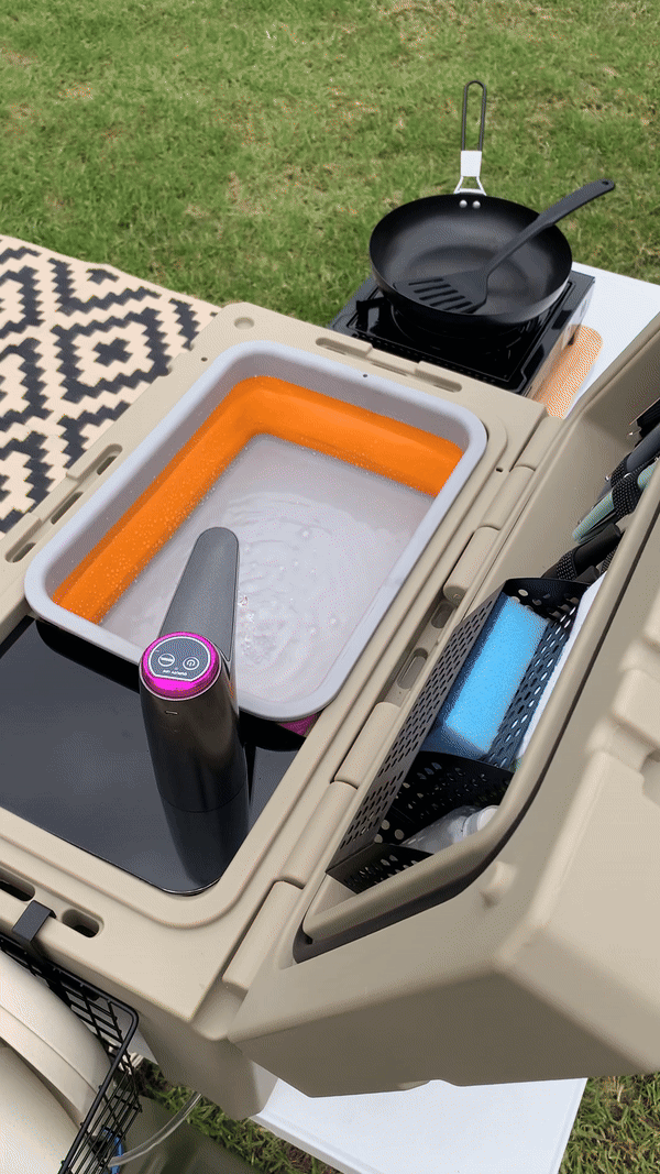 π§ Stay clean and organised outdoors, all with a compact, easy-to-carry kitchen setup!